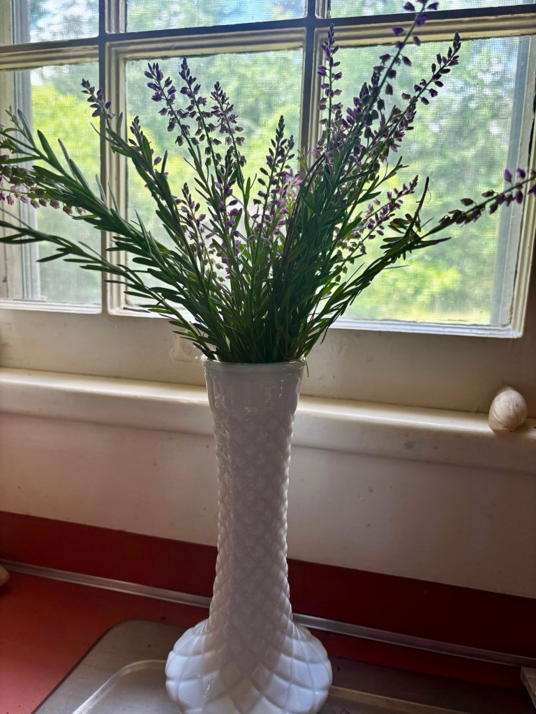 Peace…..I knew that Mama’s peace would bring about my pain. I knew that her absence would bring my anxiety. But, when I tell you that we had a celebration yesterday of her life, I mean we had a CELEBRATION. To know that she was loved by so many makes my heart rest easier. I may be an only child, but I wasn’t her only baby. She touched the lives of so many who cried with me and laughed with me over these last few days. When I went to her house on Tuesday to tidy up, I saw these beautiful flowers next to her driveway. It was like she was welcoming me back home. I took one of her milk glass vases, that she’d had a long wilted plant inside, and cleaned it up. I sat it beside her sink and I remembered how she could touch any flower and make it even more beautiful than it came out of the ground. I picked some other flowers and even a thistle. (Because even the prickly things can be loved and beautiful, mama said so.) But the simplicity of these purple flowers against the pure white of this vase spoke to me about Mama’s life. She wasn’t showy or prideful. But, boy howdy she was loud. Like Keisha Walton, one of her daughters adopted by love, said, “she was a lion with a sheep’s touch.” The contrast of her essence was what drew people in.